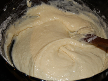 * in poza e blatul rasturnat de aceea e asa rumen, deasupra nu trebuie sa fie decat usor galbui-maroniu - Cocosul il punem intr-un bol, dar nu tot o data ci in transe, cand terminati o transa adaugati alta.