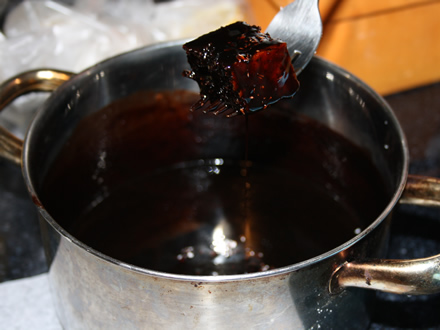 - Cat se coace blatul facem glazura: amestecam intr-o oala mica toate ingredientele pentru glazura pana cacaoa e dizolvata complet. Punem oala pe foc si fierbem la foc mediu, amestecand continuu, cam 1 minut dupa ce continutul incepe sa faca spuma deasupra. Luam glazura de pe foc si o lasam sa se raceasca complet. Daca o gustati acum, gustul de rom va parea cam intens, dar asa trebuie sa fie, la final nu se va simti decat cat trebuie.